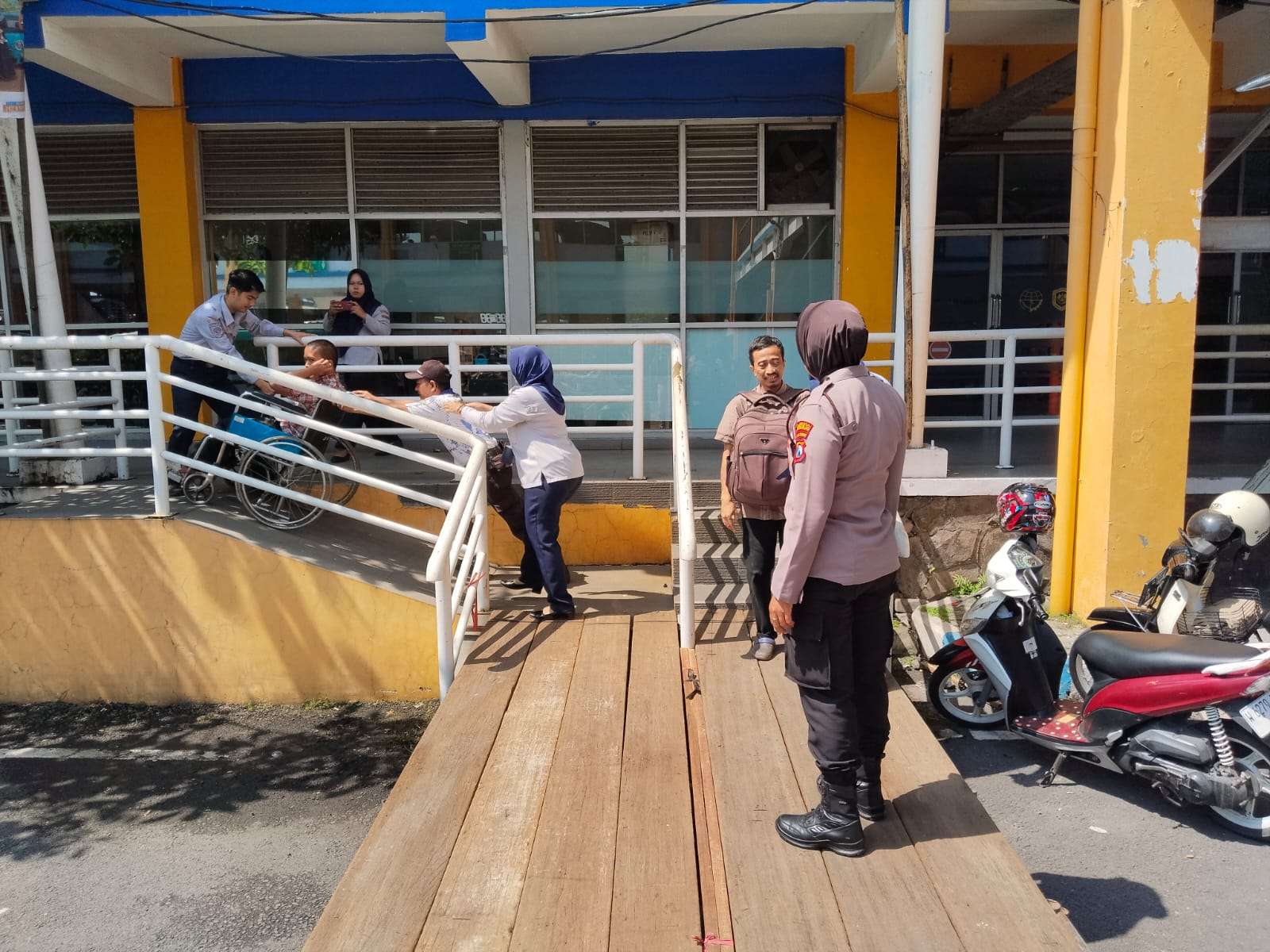 Polwan tersebut Iptu Deti Meivani, tengah melaksanakan piket pelayanan ketika melihat seorang disabilitas yang didorong menuju bus tujuan Kediri. Tanpa ragu, Iptu Deti Meivani segera menghampiri dan membantu orang tersebut hingga naik ke dalam bus dengan aman.