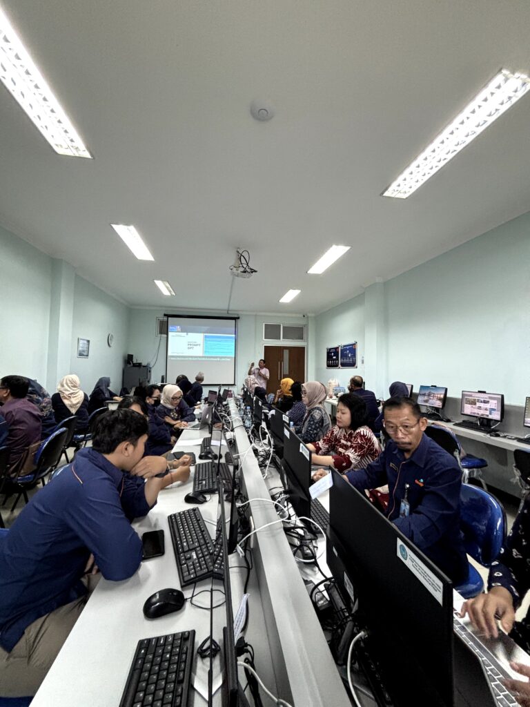 Suasana kegiatan berlangsung interaktif dan para dosen terlibat dalam sesi diskusi dan tanya jawab dengan mengajukan berbagai pertanyaan terkait integrasi AI dalam penyusunan RPS, teknik penyusunan soal berbasis analisis, hingga strategi pengawasan penggunaan AI oleh mahasiswa. Beberapa dosen juga berbagi pengalaman penggunaan AI dalam proses pembelajaran di kelas.